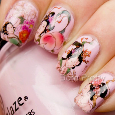 Nail Water Decals Sticker Traditional Chinese Painting Beauty Aspara Flat Peach Pattern