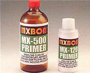 Mxbon Mx-Primer accelerates the cure of Cyanoacrylate Adhesive to provide a shorter setting time. It can be used in a variety of application but especially useful when bonding porous or poorly mated parts. Mxbon Mx-Primer cures the adhesive before it soaks into a porous surface or runs out from between parts with sizeable gap. It can also be used to spray the surface of the Cyanoacrylate to accelerate curing in wire tacking or similar bonding applications.