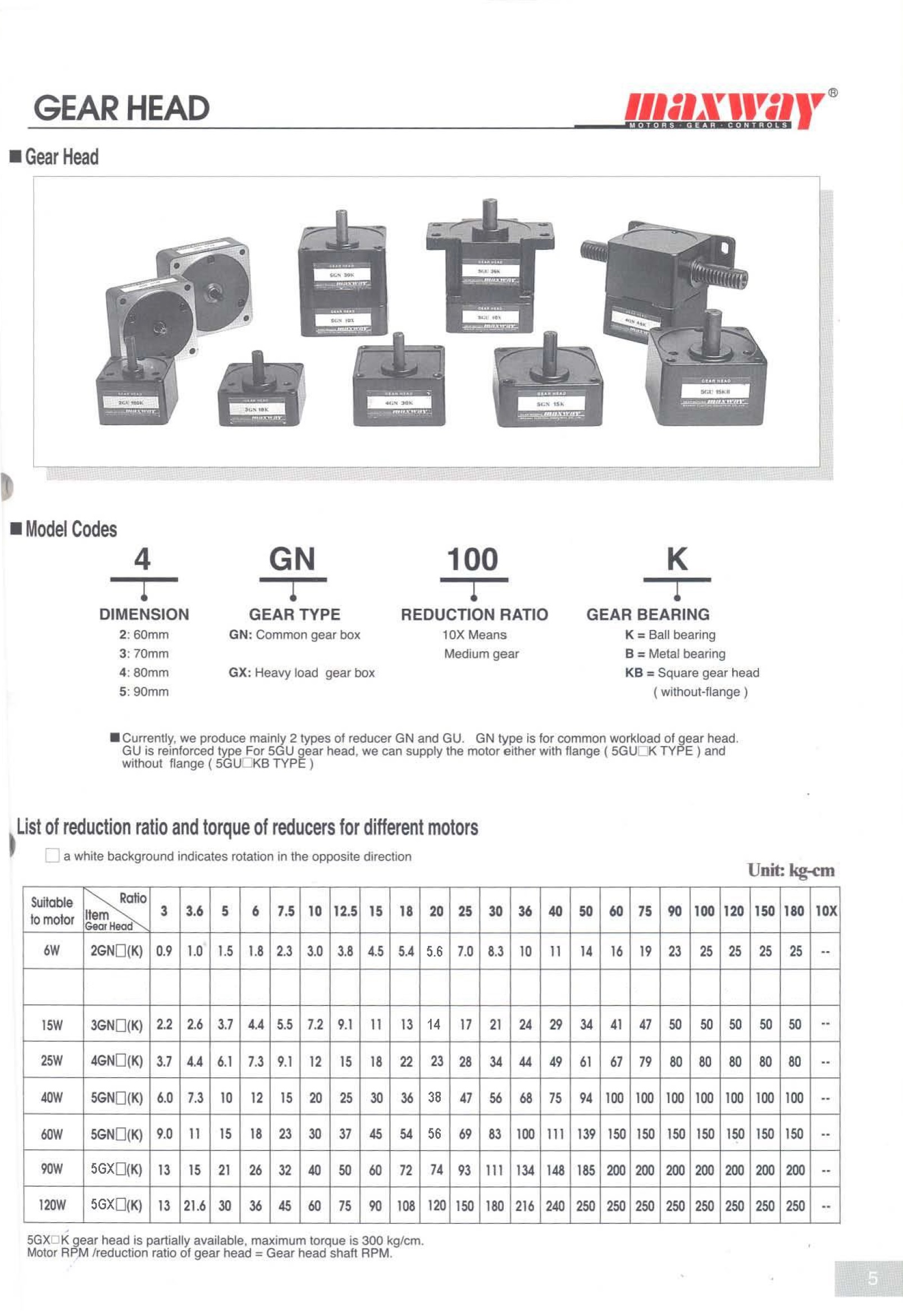 | 5GX | 90mm x 90mm | 90/120W | 3~1,800 | 200/250kg-cm |