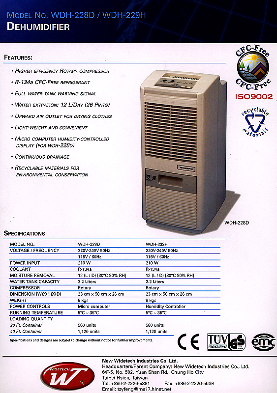 | Moisture Removal | 20(L/D)(30 deg C 80%RH) | 20(L/D)(30 deg C 80%RH) |
