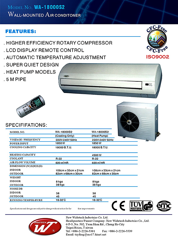 | Model No. | WA-18000S2(Cooling Only) | WA-18000S2(Heat Pump) |