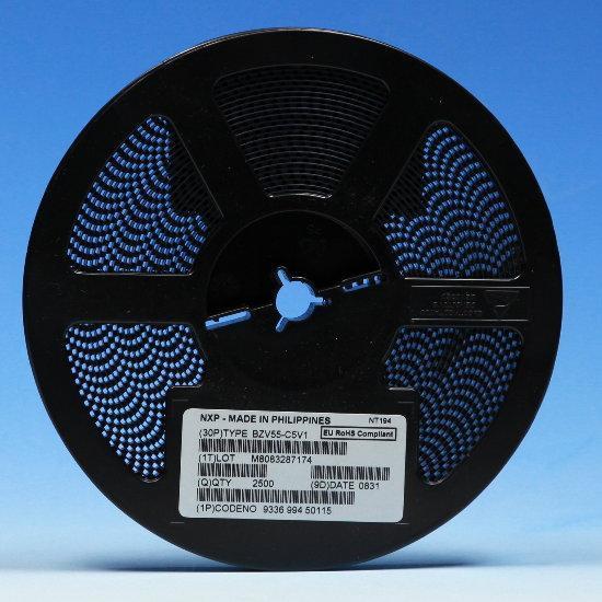 • Working Voltage: 5.1V• Forward Voltage(VF)(Max): 0.9V(IF = 10mA) • Forward Current(IF)(Max): 250mA• Zener Voltage Tolerance: ±5%• Zener Voltage(VZ)(Min): 4.8V• Zener Voltage(VZ)(Max): 5.4V• Reverse Current(IR)(Max): 2µA(VR = 2V)• Total Power Dissipation(Ptot)(Max): 500mW• Non-Repetitive Peak Reverse Power Dissipation(PZSM)(Max): 40mW• Diode Capacitance(Cd)(Max): 300pF(VR = 0V , f = 1.0MHz)• Non-Repetitive Peak Reverse Current(IZSM)(Max): 6A• Storage Temperature Range(Tstg): -65°C to +200°C• Operating Junction Temperature(TJ): -65°C to +200°C • Brand Name: NXP Semiconductors• BZV55 Series• Mounting Type: SMD(Surface-Mounted Device)• Package Type: SOD80C(SOD-80C)• Lead Count: 2• Part Number: BZV55-C5V1,115(2,500 units / reel) , BZV55-C5V1,135(10,000 units / reel)• SMD Zener Diodes Mass Stock• We supply various electronic components and welcome your inquiriesFeatures