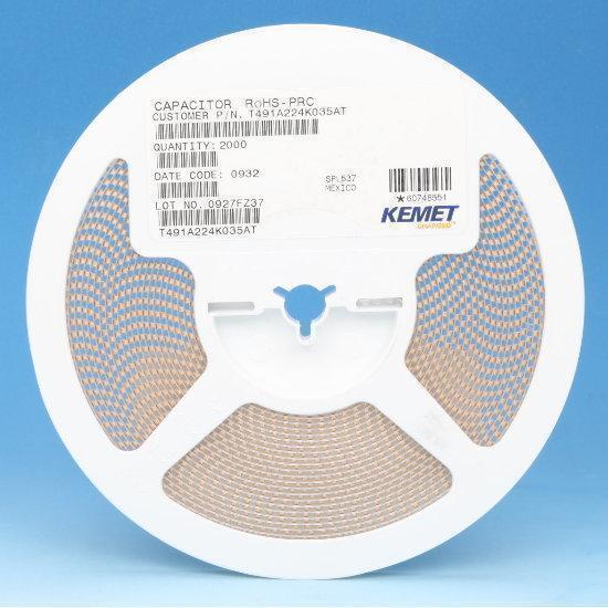 KEMET Tantalum Surface Mount Capacitors, T491 Series, Standard-type, RoHS Compliant, 0.22uF, 35V, A Case, ±10%
