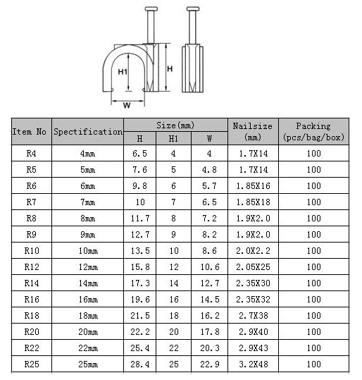 Product: Nail Cable Clips (4mm, 5mm, 6mm, 7mm, 8mm, 9mm, 10mm, 12mm, 14mm, 16mm, 18mm, 20mm, 22mm, 25mm)