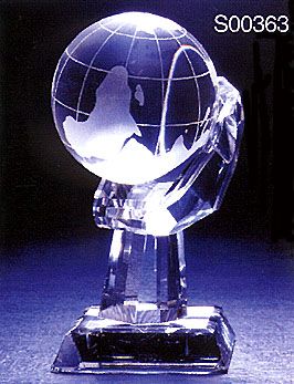 Crystal decoration. The crystal globe can spin in the crystal hand.