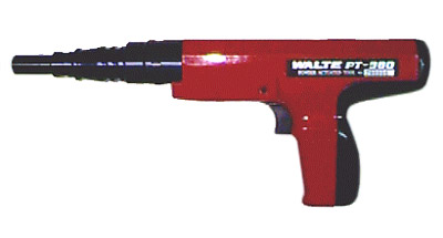 Semi-automatic powder actuated tool for medium duty pin and stud fastening.