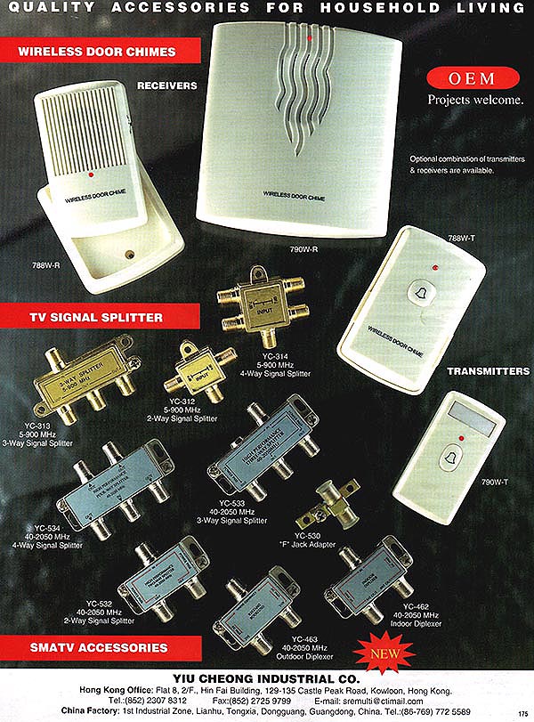 plastic and die casting products including electronic components like splitters, combiners, wireless door chimes and OEM products