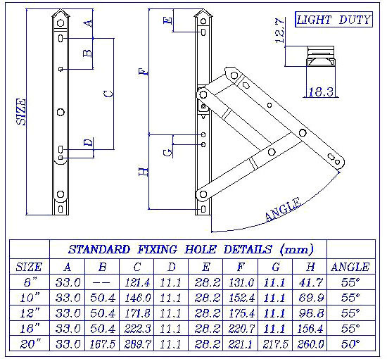 - Sliding brass shoe is friction adjustable with built in nylon block.
