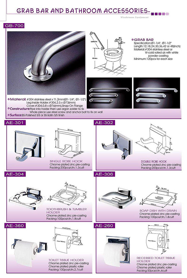 Soap Dispensers, Automatic Soap Dispenser, Automatic Air Freshener, Toilet - Tissue Dispensers, Paper - Towel Dispensers, Deodorant Cleaner, Automatic Urinal Flusher, Automatic Faucet, Automatic Hand Dryer, Hooks, Trash Cans, Towel Bars, Soap Dishes