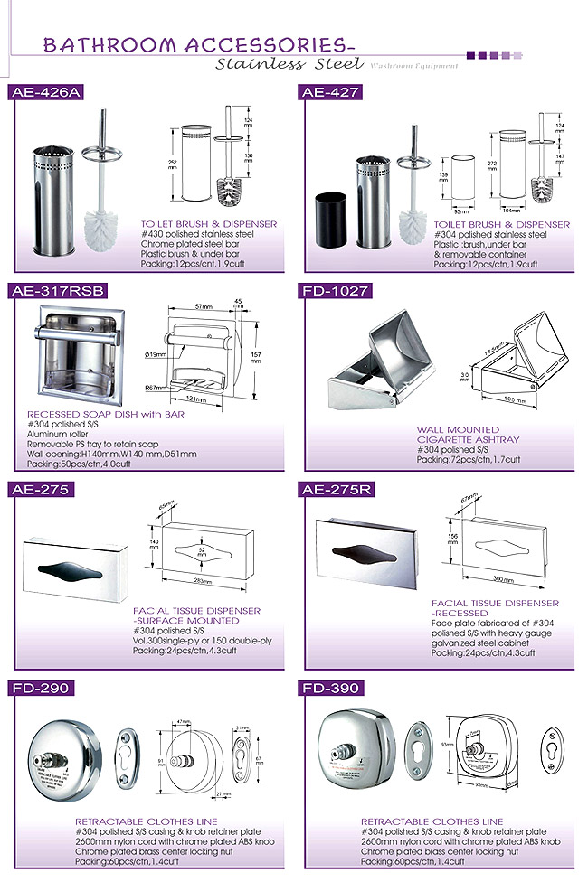 - Toilet brush & dispenser: AE-426A, AE-427.