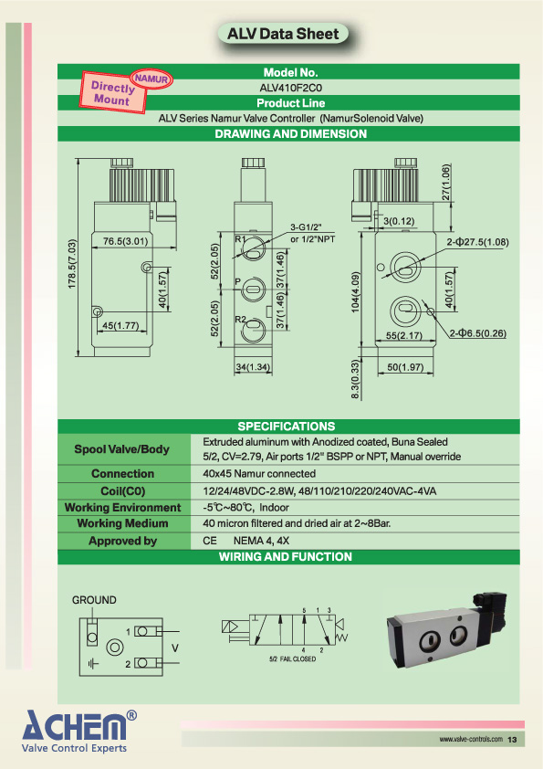 | Product Line | ALV Series Namur Valve Controller (NamurSolenoid Valve) |
