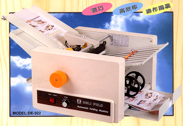 The paper folding machine model DE-282, is a new table top design for in-plant shops, speedy-printing, copy center, school, office with its easy operating you can solve your folding problems over many years.