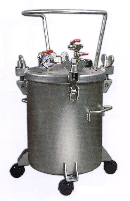 1. Pot body is one-piece formed of high-quality Stainless Steel. 2. Capacity 50 litre 3. Max. working pressure : 4.1 Bar / 60 PSI 4. Top fluid outlet Applied for : 1. Waterborne fluids like paints, adhesives, etc. 2. Glue 3. High-viscosity fluids. 4. Acid fluids, alkaline fluids and other chemical fluids. 5. General paints adding with solvent.|