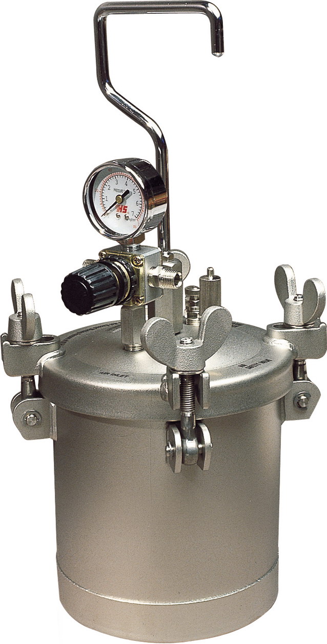 1. Pot body is one-piece formed of high-quality Stainless Steel. 2. Capacity 2 litre 3. Max. working pressure : 4.1 Bar / 60 PSI 4. Top fluid outlet Applied for : 1. Waterborne fluids like paints, adhesives, etc. 2. Glue 3. High-viscosity fluids. 4. Acid fluids, alkaline fluids and other chemical fluids. 5. General paints adding with solvent.
