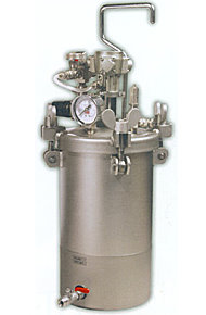 1. Pot body is one-piece formed of high-quality Stainless Steel. 2. Capacity 4 litre 3. Max. working pressure : 4.1 Bar / 60 PSI 4. Bottom fluid outlet is recommended for heavy viscous materials. 5. Pressure tanks is equipped with air agitator 6. Agitator blade is made of stainless steel. Applied for : 1. Waterborne fluids like paints, adhesives, etc. 2. Glue 3. High-viscosity fluids. 4. Acid fluids, alkaline fluids and other chemical fluids. 5. General paints adding with solvent.