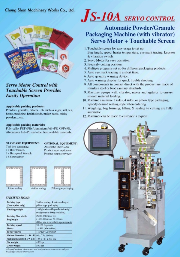 - Machine can make 3 sided, 4 sided, or pillow type packaging.