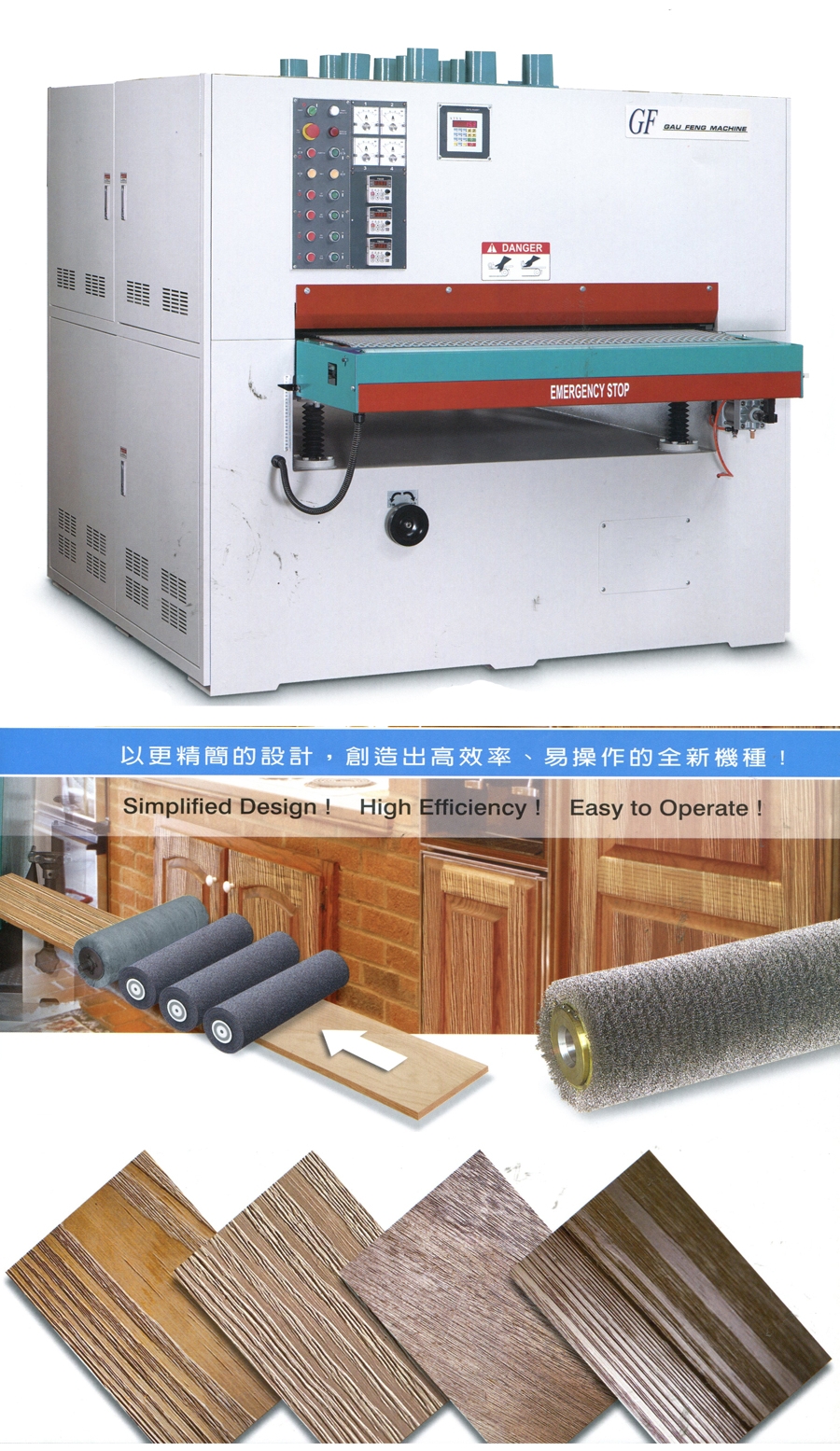 Variable Feed SpeedThe wood feed speed is variable, permitting the machine to brush grain on various types of wood.