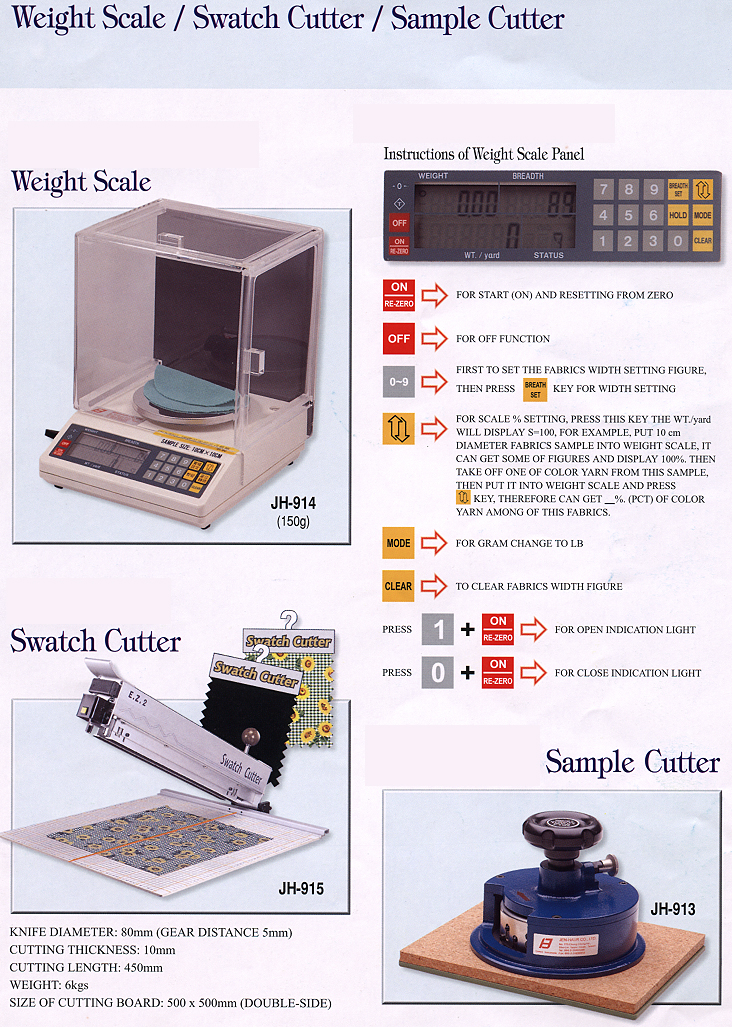 • Weight Scale / Swatch Cutter / Sample Cutter