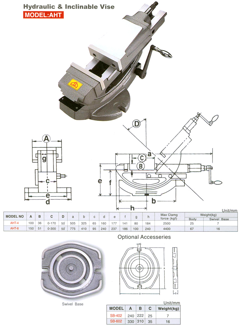 Different form other conventional milling vise, the angle vise makes angular settings in directions possible. The vertical angle can be setting from 0-50° of your need. Precise angular setting in plan can be read from the mounted scale.