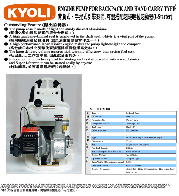 Brushcutter (backpack and shoulder type), Power Sprayer (backpack type), Dust / Mist Blower (backpack type), Water Pump (handcarry and backpack type)
