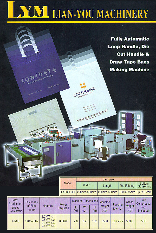 Fully Automatic Loop Handle, Die Cut Handle & Draw Tape Bags Making Machine