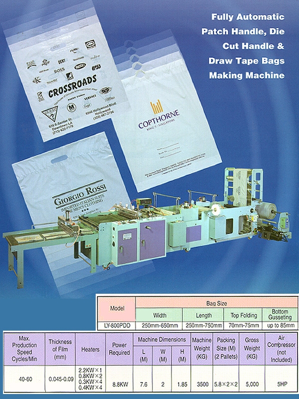 Fully Automatic Patch Handle, Die Cut Handle & Draw Tape Bags Making Machine
