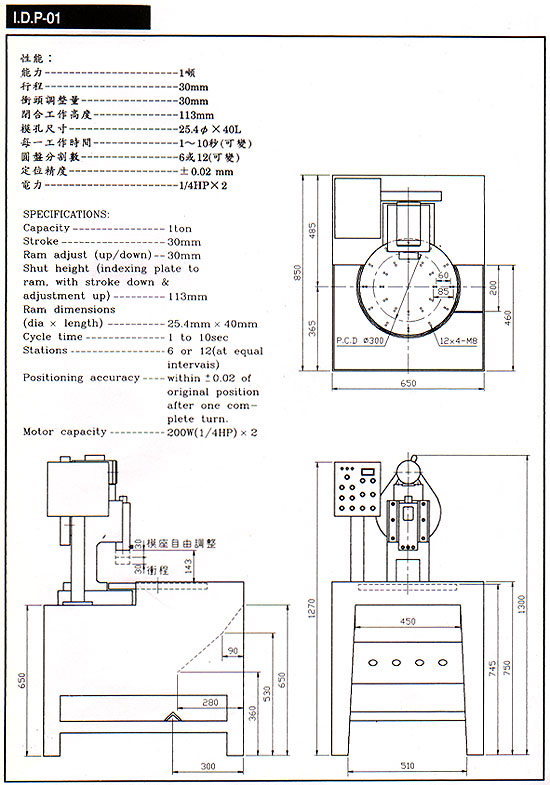 1-ton, 3-ton, 5-ton, 8-ton, Disk Indexing Table Press