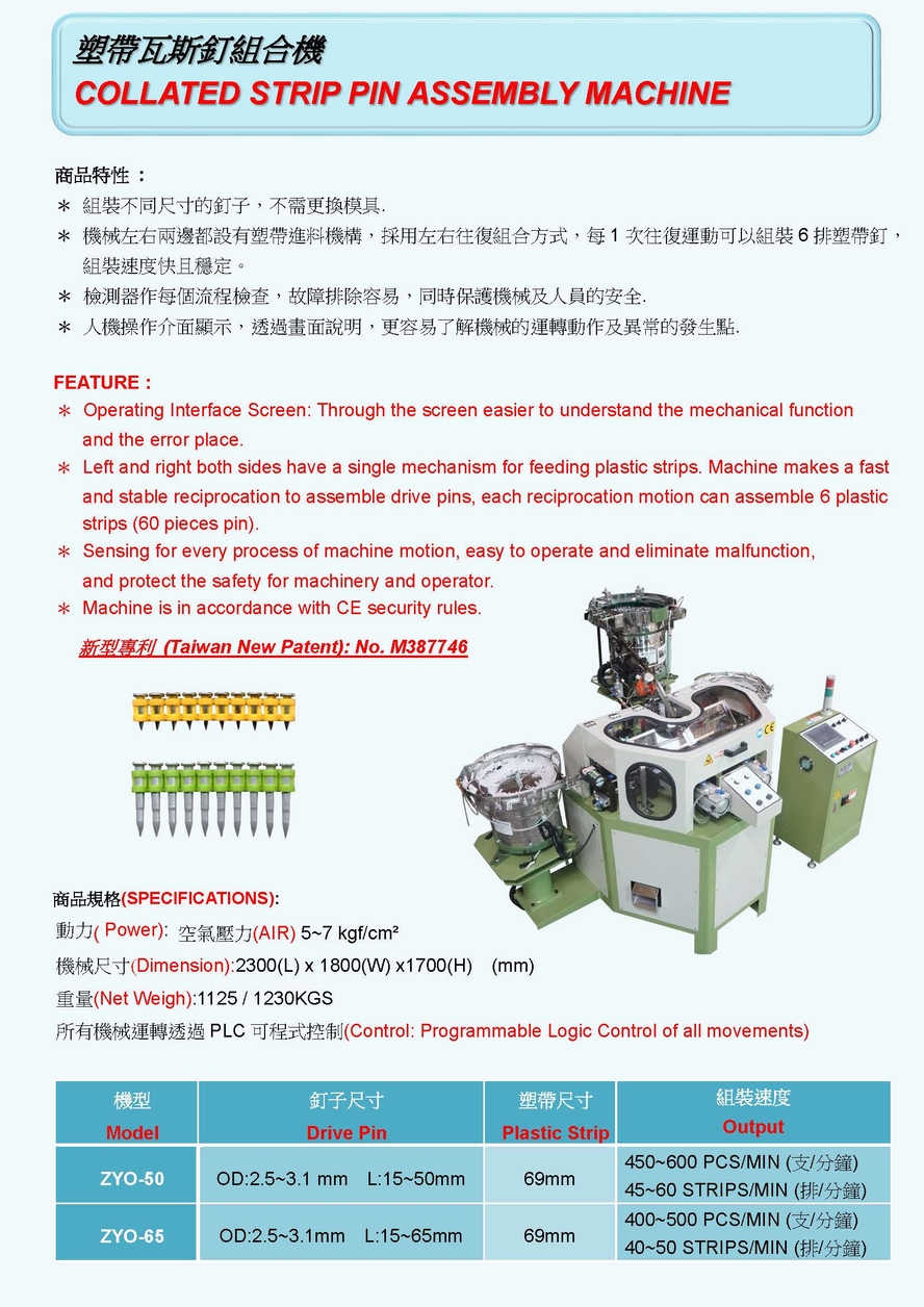 | ZYO-65 | OD:2.5~3.1 mm L:15~65mm | 69 mm | 400~500 PCS/MIN |