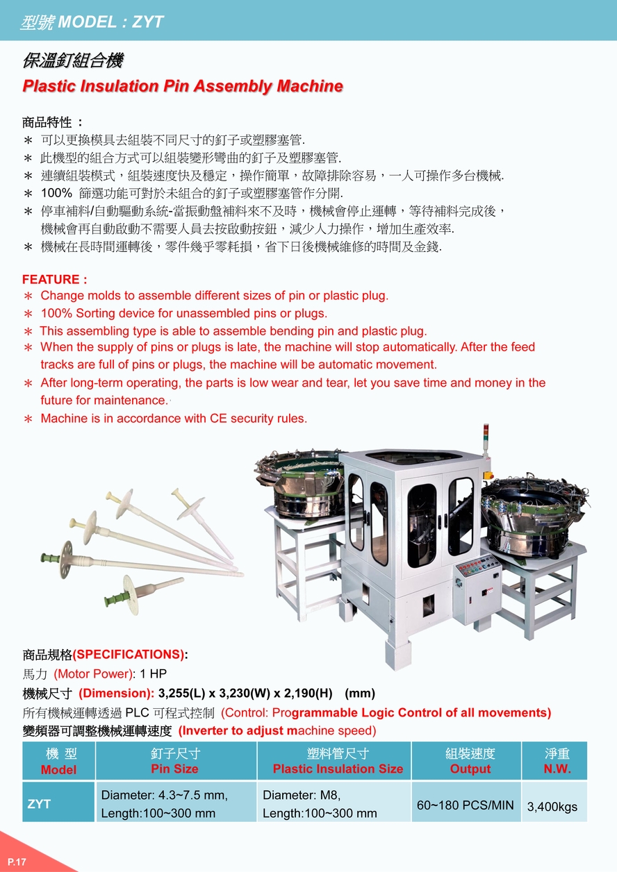 - It is able to assemble curved long pins and plastic insulations.