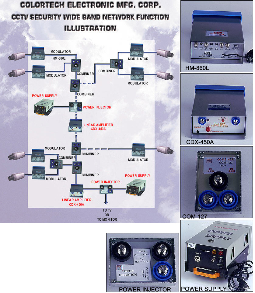 While Our New Function Combined CATV Technology And CCTV Construction Quality Together. To Make Audio And Video Signals Of Each Pair Be Modulated To RF Signal (TV Channel Signals) And To Be Transmitted By One Cable Which Can Get:All Signals Are Transmitted By One Cable.All Power Supply By Few Source.Save Big Cost.Raised Quality More Higher.Construction More Simple.Maintain Job More Simple.This Function Is Most Suitable For Residential Area, Factory, School Shopping Mall etc.
