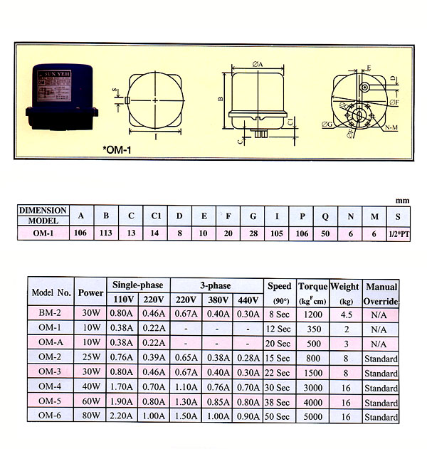 | OM-1 | F | 1/2 ~ 1 | FC/SUS304/SUS316 | 110 ~ 220* |
