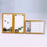 Colorful memo board is a wood grain plastic frame of magnetic white board printed with colorful picture. We have 8 kinds of standard design, buyer's design is also available. Each with 2pcs magnet 2pcs hanger and 1pcs marker.