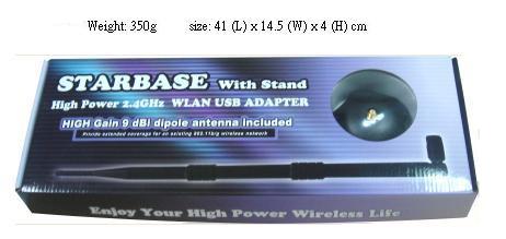 Powerful WLAN USB adapter (STARbase) fully supports the features and functional compliance of IEEE 802.11b/g standard. Our WLAN USB Starbase provides competitive price, powerful and stable performance to PC & NB linked into unlimited wireless network world.