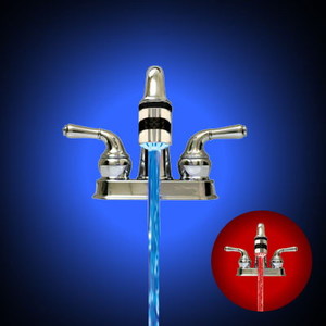 LED Faucet Light Warns You of Impending Burning, Glow blue and red to warn you of the temperature. it changes color based on the temperature, making you feel like you're doing the dishes with either antifreeze or Gatorade. It's a cool concept, as you won't have to worry about scorching your hand while testing the water again. If it's red, don't mess with it.