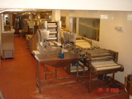 Automatic line for production of pocket pita, naan, and any type of flat bread. It consists of 11 units: Flour silos, removable bowl mixer, elevator with tilting lifting system, dough doser feeder, divider rounder, first proofer, dough flattener or sheeter, final proofer, brick tunnel oven, cooling conveyor, bagger with tie twisting.