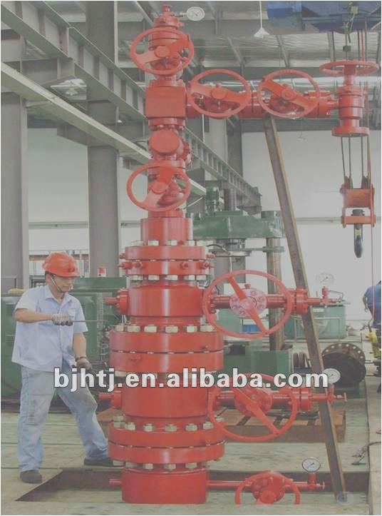 Wellhead adopts a single-layer or a double-layer casing head, the bottom is welded and is connected with an O-shaped ring, the wellhead can be provided with a ring bottom support disc. secondary seal can adopt various seal types including BT,P type, BES, etc., the seal is safe and reliable, and the operation is simple, tubing hanger adopts the mandrel type, rubber is triggered to seal by means of the squeezing of top thread, thread, thereby having the characteristics of big suspended load ,reliable seal ,etc., The valve on the X-mass tree adopts a hidden bar ,namely a seal structure behind the valve, thereby having the characteristics of small switching torque, simple on-line maintenance ,etc.