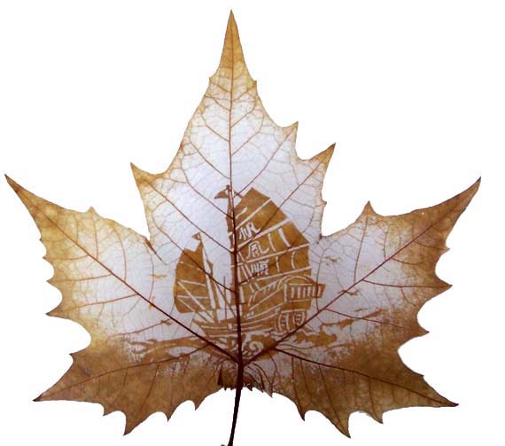 I am here just to introduce you a new art craft. Its name is Leafage carving artwork.. It is a kind of artwork that making on leaves. We can carve anything you want onto the leaves. Also the leaves are treated with more than 60 working procedures before they can be used to make Leafage carving artwork.