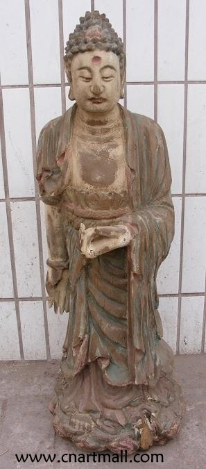 - Wood Carving Standing Buddha Statue