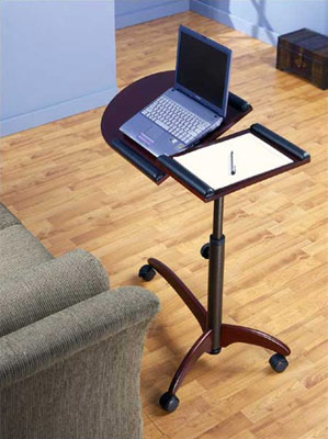 The Laptop Desk is a great choice for making reading and working accessible any where in the house. It includes a large tilting work surface with multiple angle settings as well as adjustable height control options to accommodate users of all sizes. Other features include a built in wrist pad rest for extra comfort, a side shelf for storing office supplies and accessories and locking casters for easy mobility. Choose from three gorgeous colors including cherry, light cherry and oak.