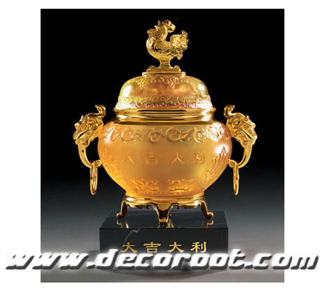 It is said that coloured glaze was firstly discovered by Gan Jiang in Chunqiu Zhanguo Times when he made the sword of the King. It is smelted by raging fire, which is the climax that nature would possibly bring. Coloured glaze, bullion, jade, china and bronze and name the Five Famous Ware of China. Yuan Zhen, a poet of Tang Dynasty, praises the charming, splendid and elegant demeanour of coloured glaze in his famous poem Coloured Glaze Song.