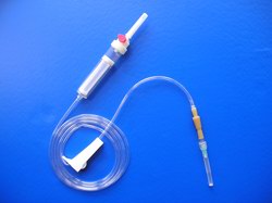 spike with vent, big chamber with filter, roll clamp, luer lock, latex bulb, needle