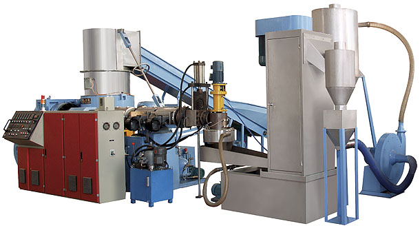 The unit consists of extruder, cooling water tank, drying machine, granules cutting machine and shaking sieve, and the total length is about 12 meters. It is suitable for making granules from PET, PP, PS, PVC, PE and other engineering plastic. Multi-used,High production capacity, advanced technology.