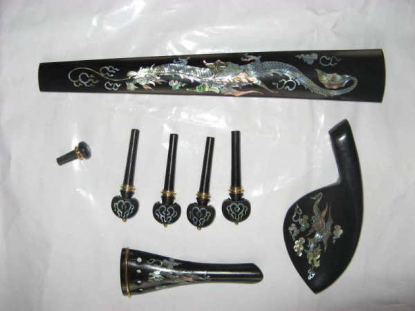 Flower pattern in fingerboard , tailpiece and chinrest