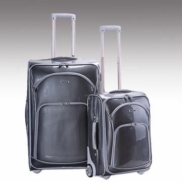 Description: front panel with EVA backing, inner trolley with button, Aluminum tube, Skate Wheels. Two zipper pocket on front, one zipper pocket inside. No expandable function.