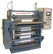 Hi-Speed surface winder for making tape less adding machine rolls, ATM Rolls, POS Roll, etc. Machine has fully Integrated Touch Screen base PLC Controls. The paper is auto folded, Pinched and Rider roll is auto lowered. The machine will slow down and stop before it reached at the set desired length. Auto Marker gets ON before it reaches the set length. The Rider roll is auto lifted on completion of the wound roll.