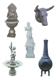 Cast iron fountain,wall fountain,conduit,statuary,stove,chimenea