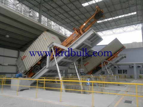 Product introduction: As a professional supplier of bulk material processing, KRD introduced advanced container discharging technology in the early years. We started developing, engineering and manufacturing container unloading systems since 2005. The system can discharge product directly from 20 or 40 feet’s containers to downstream equipments. Containers can be lugged or lifted to the container discharging platform.