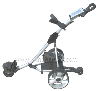 electric golf trolley with CE& Rohs. It is a standard equipment and easy to use. In just seconds with two simple actions, open and fold completely. There's nothing to assemble or dismantle. The whole unit just clicks into position.
