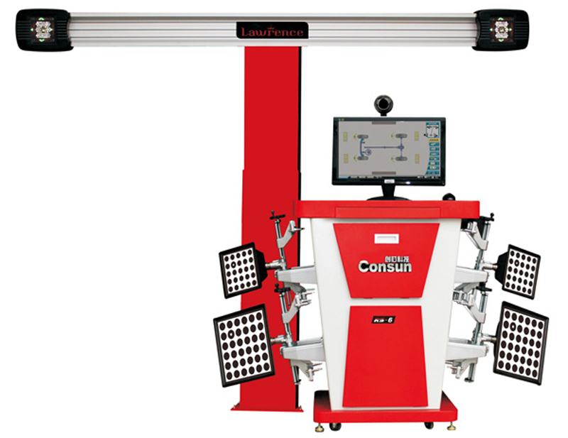 Exquisite movable small cabinet, adjustable height strengthening pole, high performance computer,22’ LCD monitor, HP printer, special target disk, deluxe clamping tire clamps, PC Camera showing vehicles on platform function, Steering lock, pedal presser, wedge-shaped pads, turntables, transition blocks of turntable.
