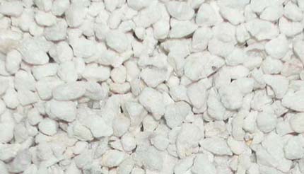 MADE FROM PERLITE, AN ACIDIC GLASSY LAVA, BY CRASHING, FILTRATION, WARMING-UP AND THE SUDDENLY CALCINE IT.